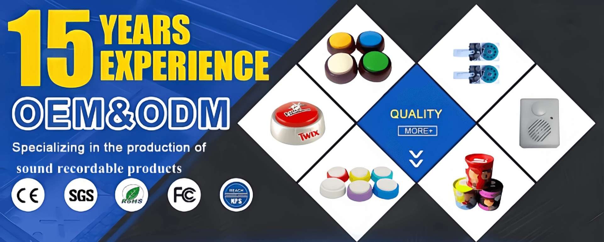 Shenzhen HYX Electronics Limited was established in 2010, Which it is specialized in producing all sorts of sound recordable products, LED flashing products and plastic sound promotional products. Our factory is located in Shenzhen,China. Our factory integrates R&D department, production department, QC department and marketing department. Our engineering department is highly experienced and we are able to make IC development according to customer's needs. We have advanced production equipments and testing instruments to ensure the reliable quality and to save the production time. The staffs of our production department are highly skilled and experienced. We have strict quality inspection system,which from raw materials to the finished products, Our products comply with CE,ROHS,SGS,FCC,REACH etc standard.